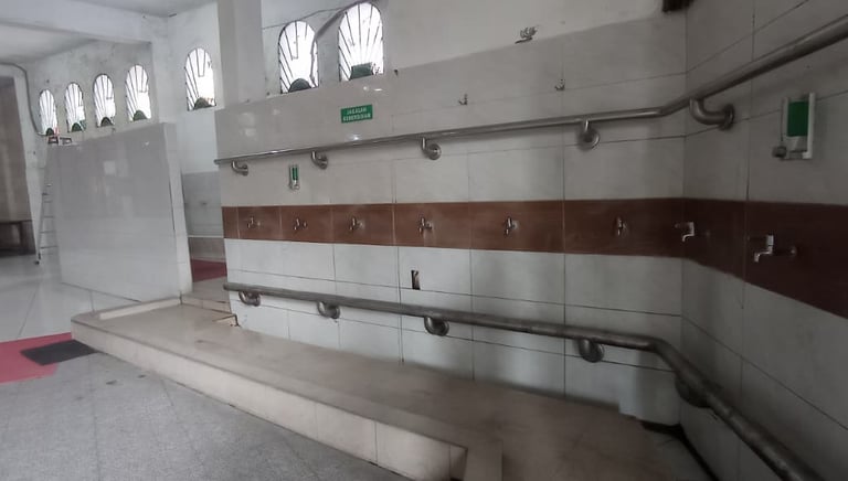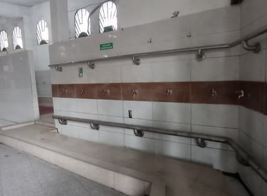 Area wudhu bersih dengan aliran air yang lancar untuk memudahkan jamaah
